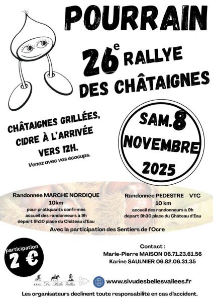 Cette année le Rallye des châtaignes organisé par le Sivu des Belles vallées se déroulera à Pourrain.